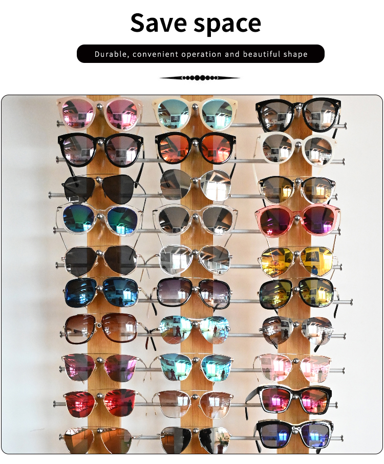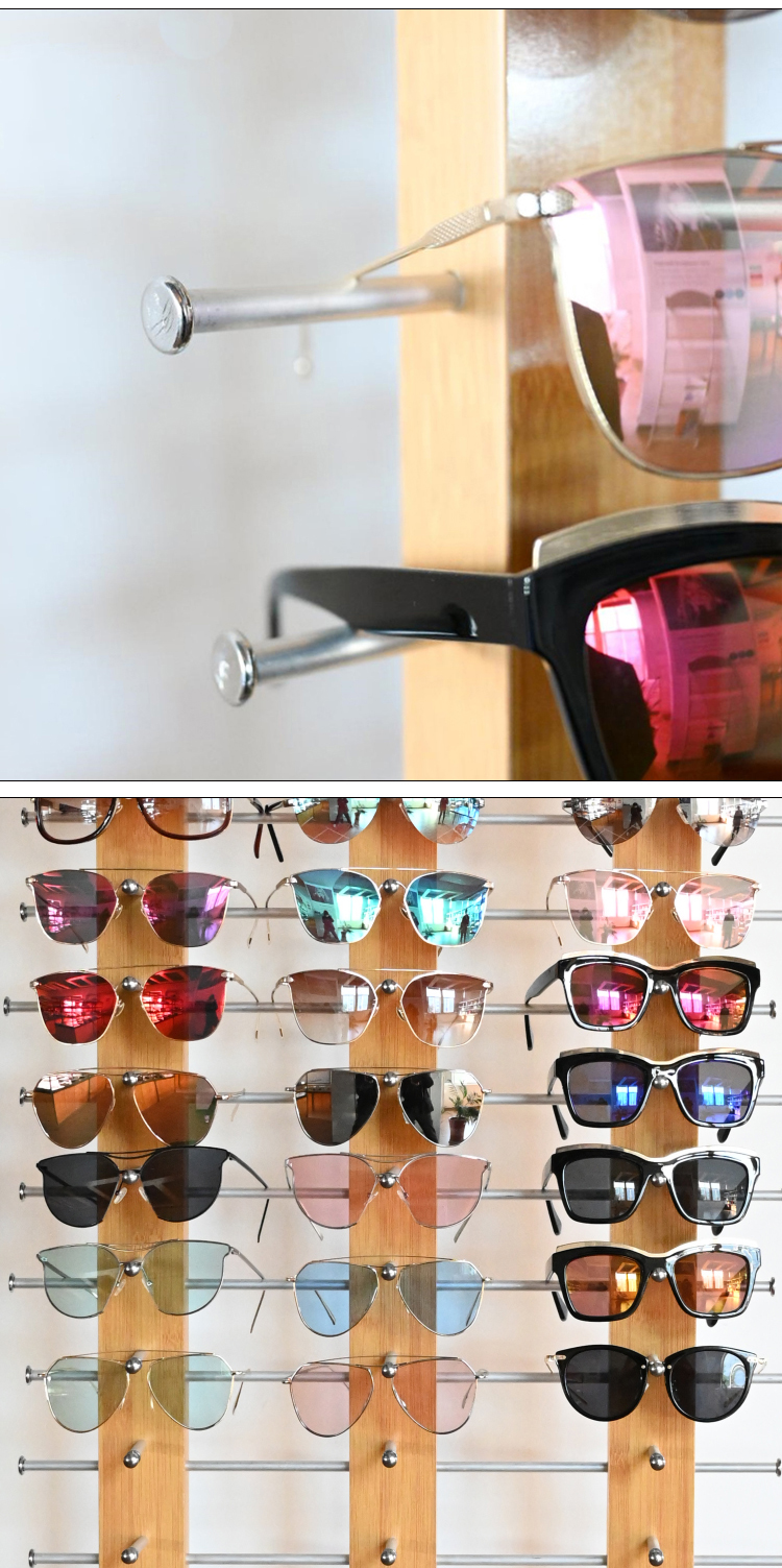 Short Description: Table sunglasses display stand for compact counter space. Perfect for featuring best-selling styles or new arrivals.